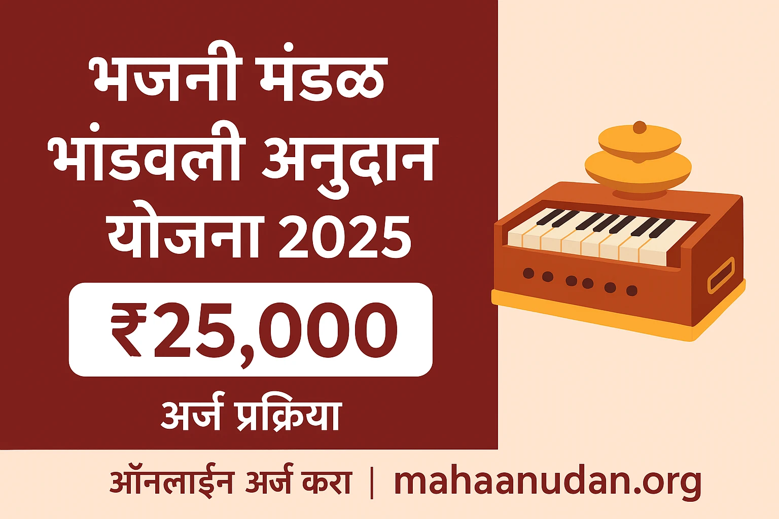 महाराष्ट्र भजनी मंडळ अनुदान राज्यातील भजनी मंडळांसाठी सांस्कृतिक कार्य विभागामार्फत महत्त्वाची योजना सुरू करण्यात आली आहे. भजनी मंडळ भांडवली अनुदान योजना अंतर्गत पात्र मंडळांना एकवेळ ₹२५,००० भांडवली अनुदान देण्यात येणार आहे. या माध्यमातून हार्मोनियम, टाळ, पखवाज किंवा इतर भजन साहित्य खरेदी करण्यासाठी आर्थिक मदत मिळणार आहे.