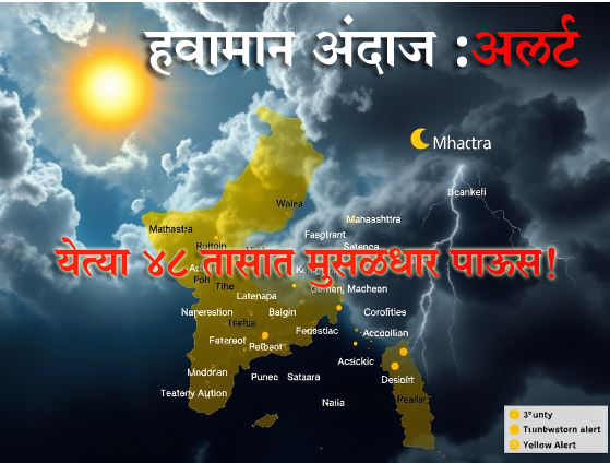 - विजांसह हलक्या सरींची शक्यता (येलो अलर्ट):