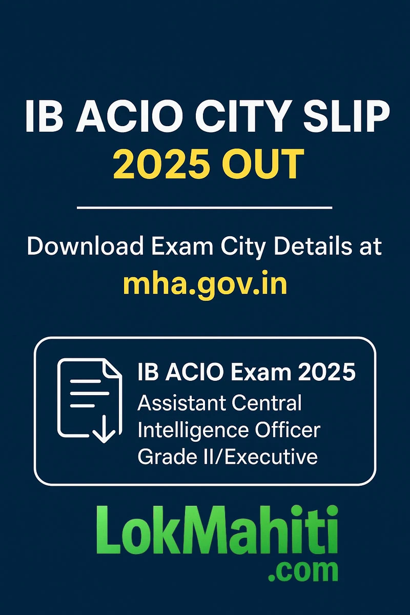 IB ACIO City Intimation Slip 2025: परीक्षा शहर आणि तारीख जाहीर, येथे डाउनलोड करा