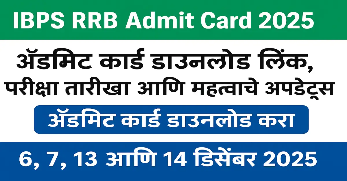IBPS RRB Admit Card 2025: इन्स्टिट्यूट ऑफ बँकिंग पर्सोनल सिलेक्शन (IBPS) ने रीजनल रूरल बँक (RRB) ऑफिस असिस्टंट (Multipurpose) पदासाठी होणाऱ्या प्रिलिम्स परीक्षेचे अॅडमिट कार्ड/कॉल लेटर जारी केले आहे. परीक्षेसाठी अर्ज केलेले उमेदवार 14 डिसेंबर 2025 पर्यंत अधिकृत वेबसाइट ibps.in वरून अॅडमिट कार्ड डाउनलोड करू शकतात.