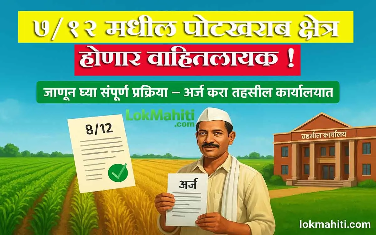 महाराष्ट्रातील शेतकरी बांधवांसाठी महत्त्वाची माहिती! आपल्या ७/१२ (सातबारा उताऱ्यावर) दाखवलेले पोटखराब क्षेत्र आता वाहितीलायक (लागवडीयोग्य) करून घेता येणार आहे. या प्रक्रियेमुळे शेतकऱ्यांना अनुदान, पीककर्ज, व इतर शासकीय योजनांचा लाभ मिळणे सोपे होईल.