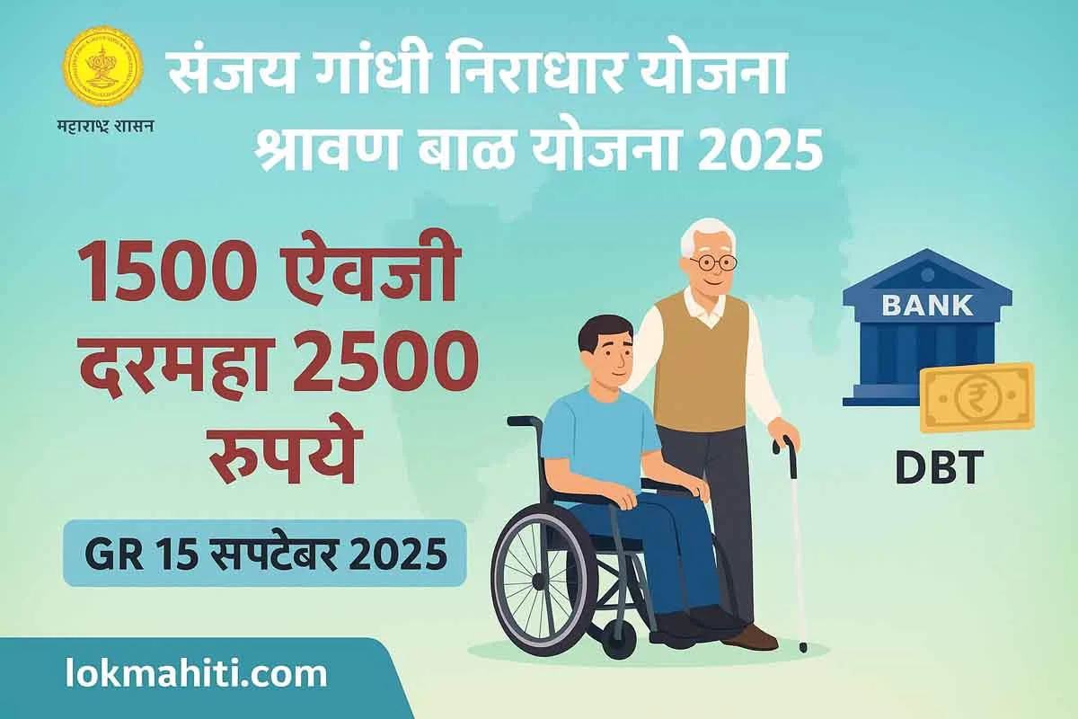 महाराष्ट्र शासनाने दिव्यांग लाभार्थ्यांसाठी मोठा निर्णय घेतला आहे. संजय गांधी निराधार अनुदान योजनाश्रावणबाळ सेवा राज्य निवृत्तीवेतन योजनेअंतर्गत दिव्यांग लाभार्थ्यांना मिळणारे मासिक अर्जसहाय्य 1500 रुपयांवरून वाढवून 2500 रुपये करण्यात आले आहे. हा निर्णय ऑक्टोबर 2025 पासून लागू होणार आहे.